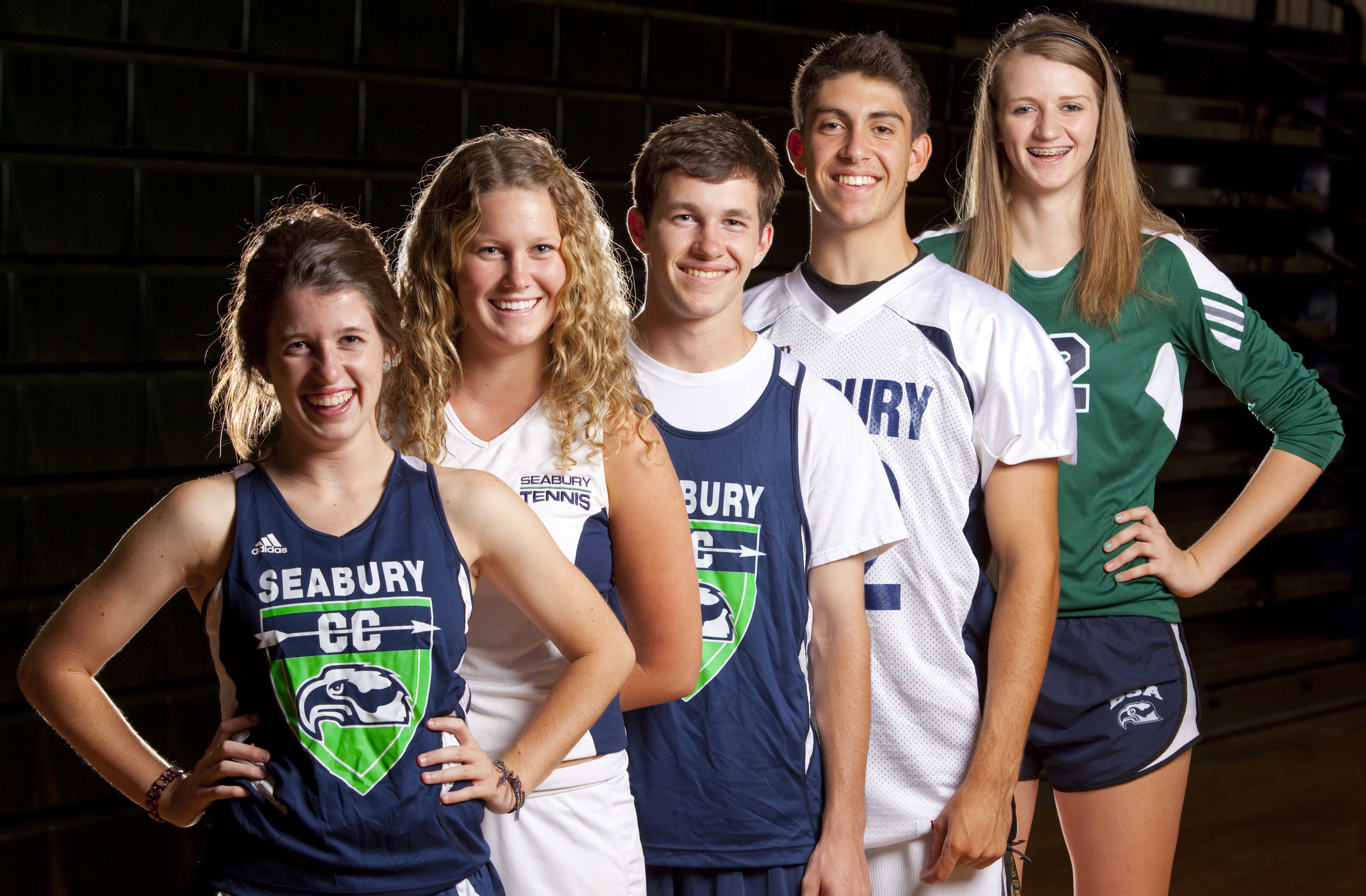 Bishop Seabury Academy seniors, from left, are Maddie McCaffrey, cross country, Emilie Padgett, tennis, Brandon McCaffrey, cross country, Fischer Almanza, football, and Courtney Hoag, volleyball.