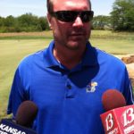 Kansas basketball coach Bill Self meets the press after participating in the Otto Schnellbacher Classic on Friday, June 8, 2012, in Mayetta.