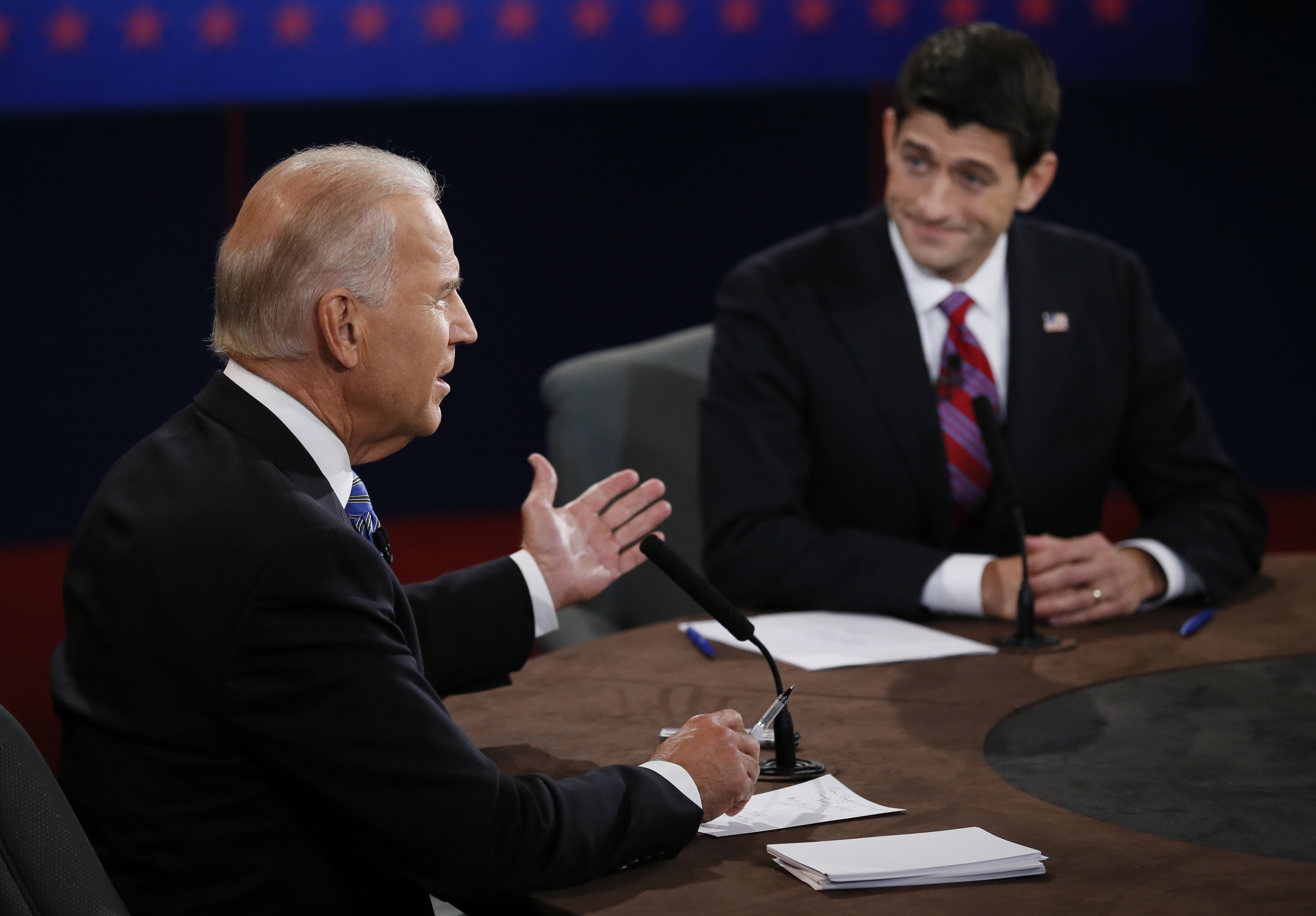 Vice President Joe Biden and Republican vice presidential nominee Paul Ryan of Wisconsin participate in the vice presidential debate at Centre College, Thursday, Oct. 11, 2012, in Danville, Ky.
