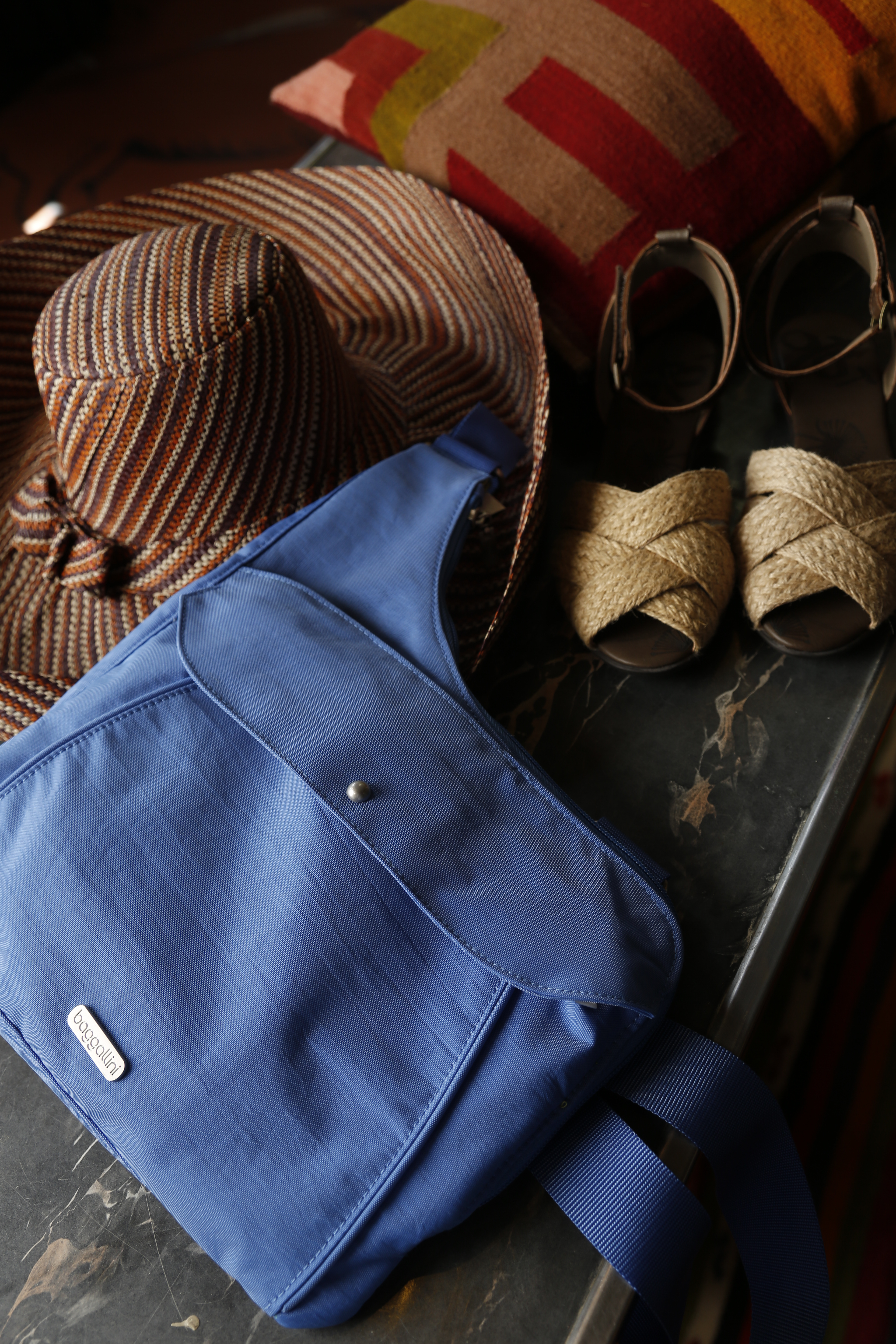 Shoes can take up a lot of space in a little bag. Ricketts sticks to two pairs — one pair dressy enough to wear out somewhere nice and another pair for walking. (Both comfortable, of course!)
