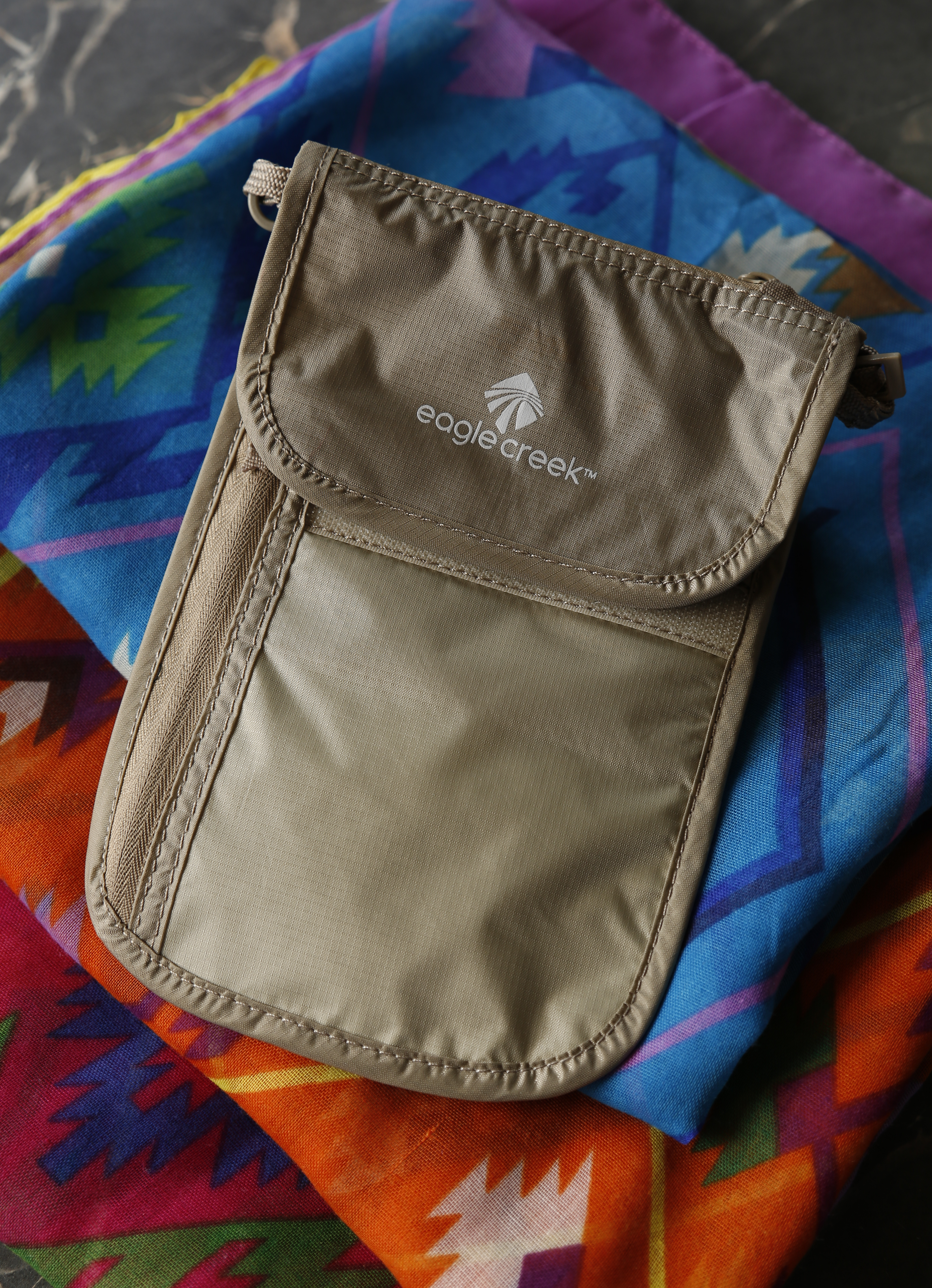 A hidden wallet can be worn inside one's shirt or waistband to hide valuables including passports and money.