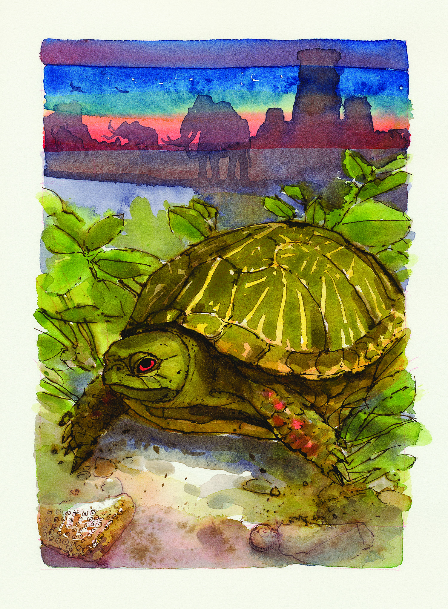 An illustration of an ornate box turtle, published in A