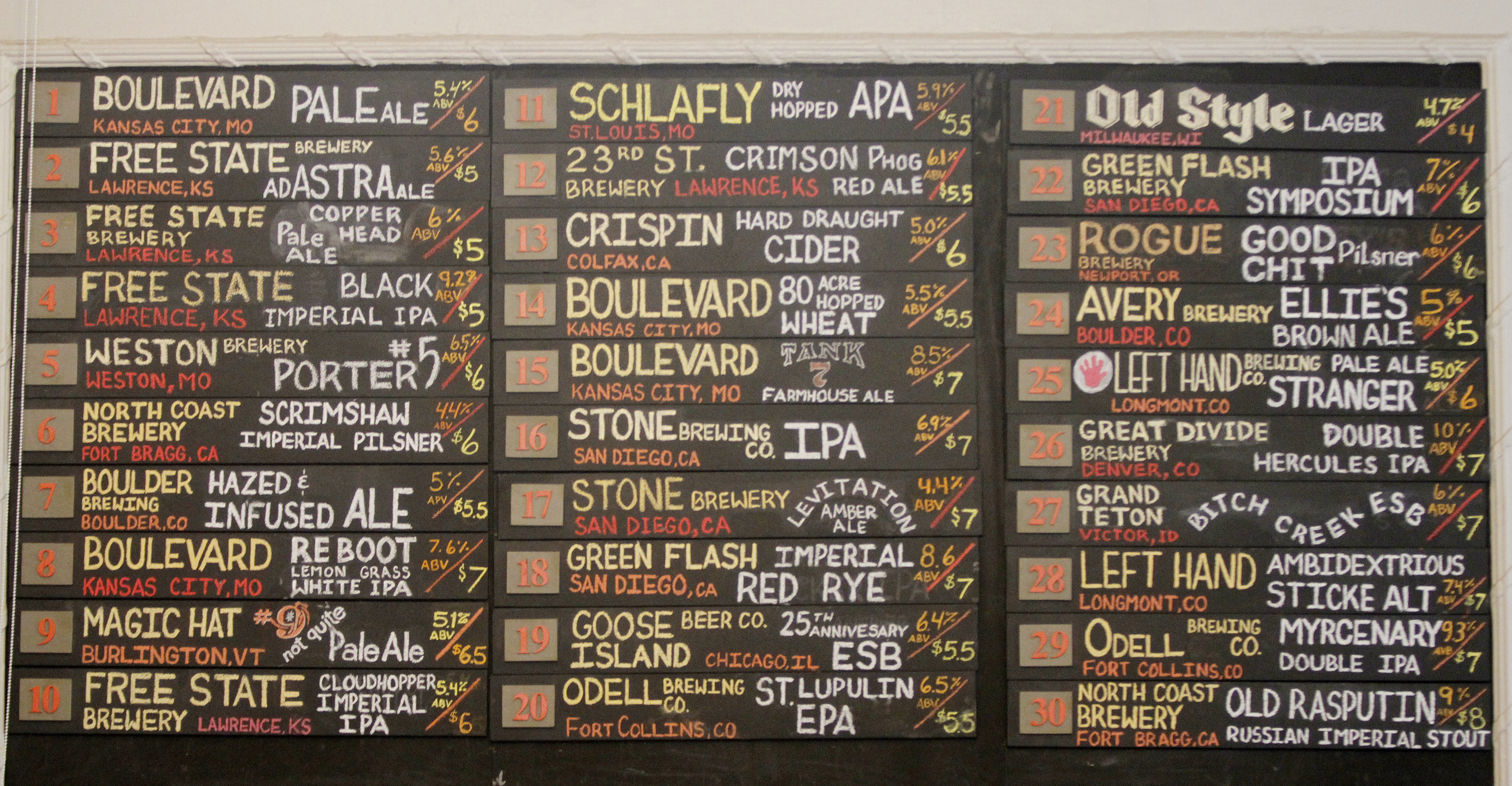 The new pub boasts 30 beers on tap — all craft, all from stateside breweries. Beer from Lawrence and the surrounding region accounts for about 40 percent of the taps. There’s a variety of imports available in bottles.