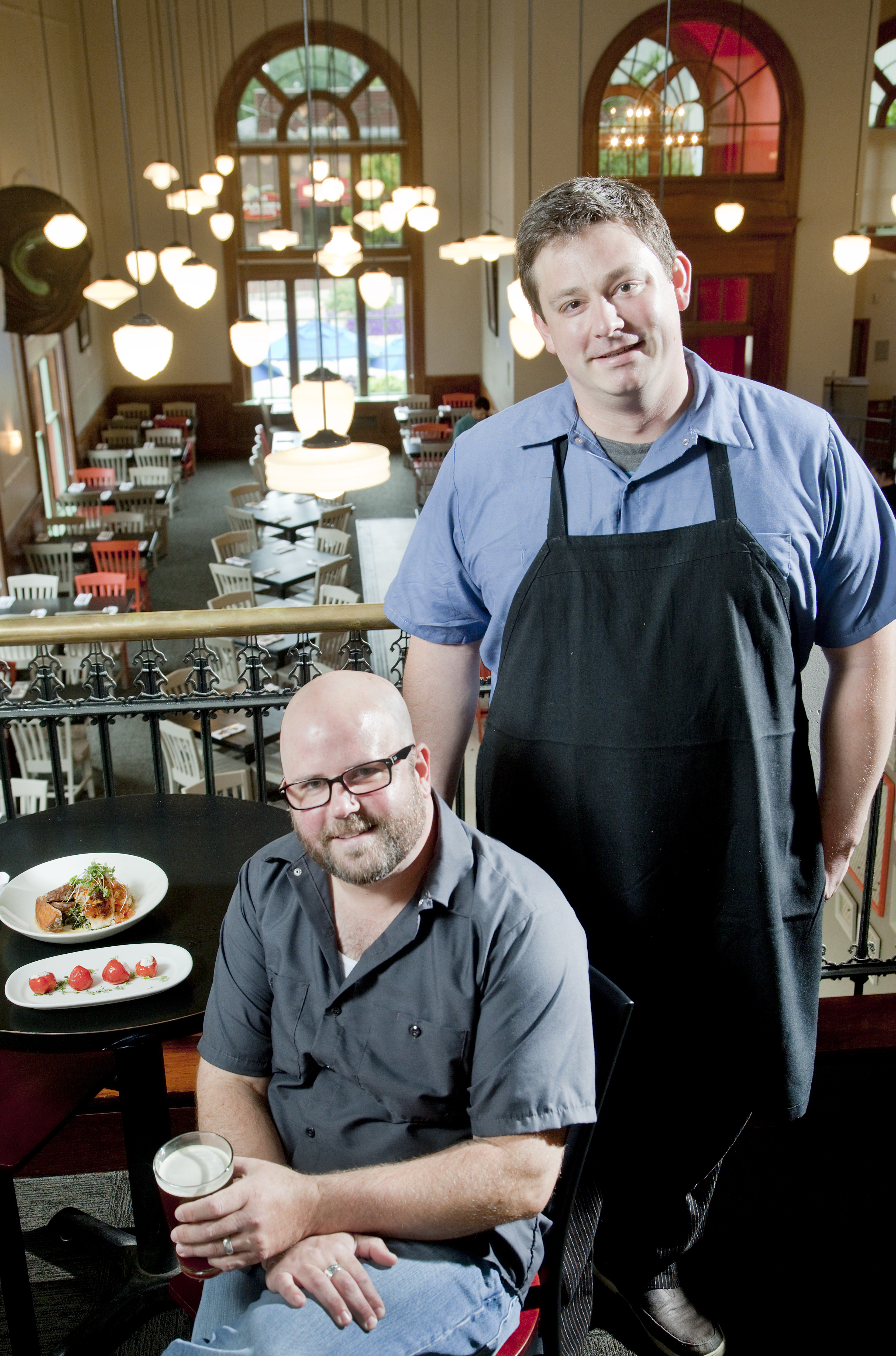 Chef/owner TK Peterson, standing, and owner Philip Wilson opened Merchants Pub & Plate, 746 Massachusetts St., in September.