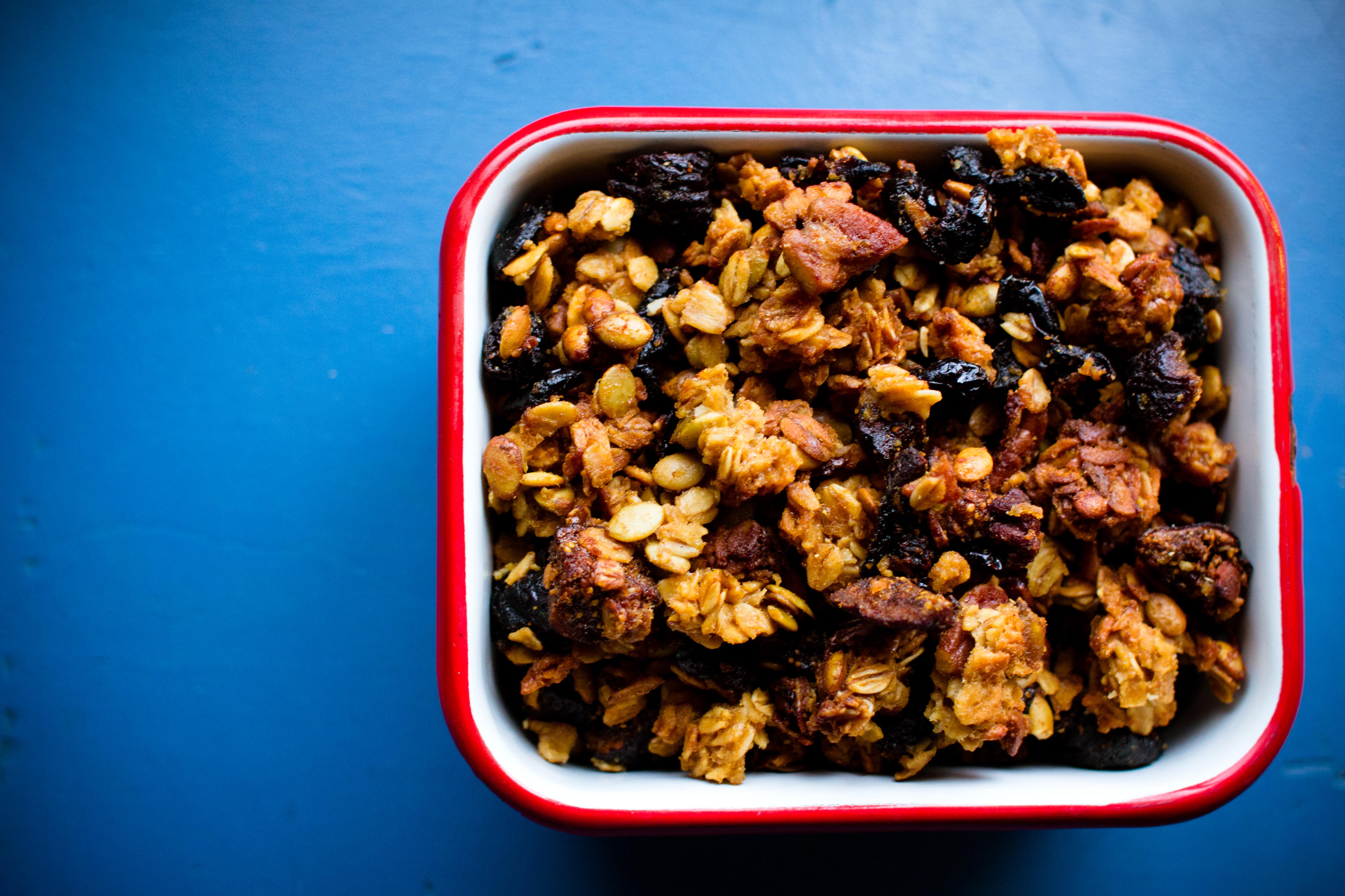 I’ve learned that it’s best to bring our own sustenance when we fly, and one snack that’s always nice to slip in our carry-on is a container of homemade granola.