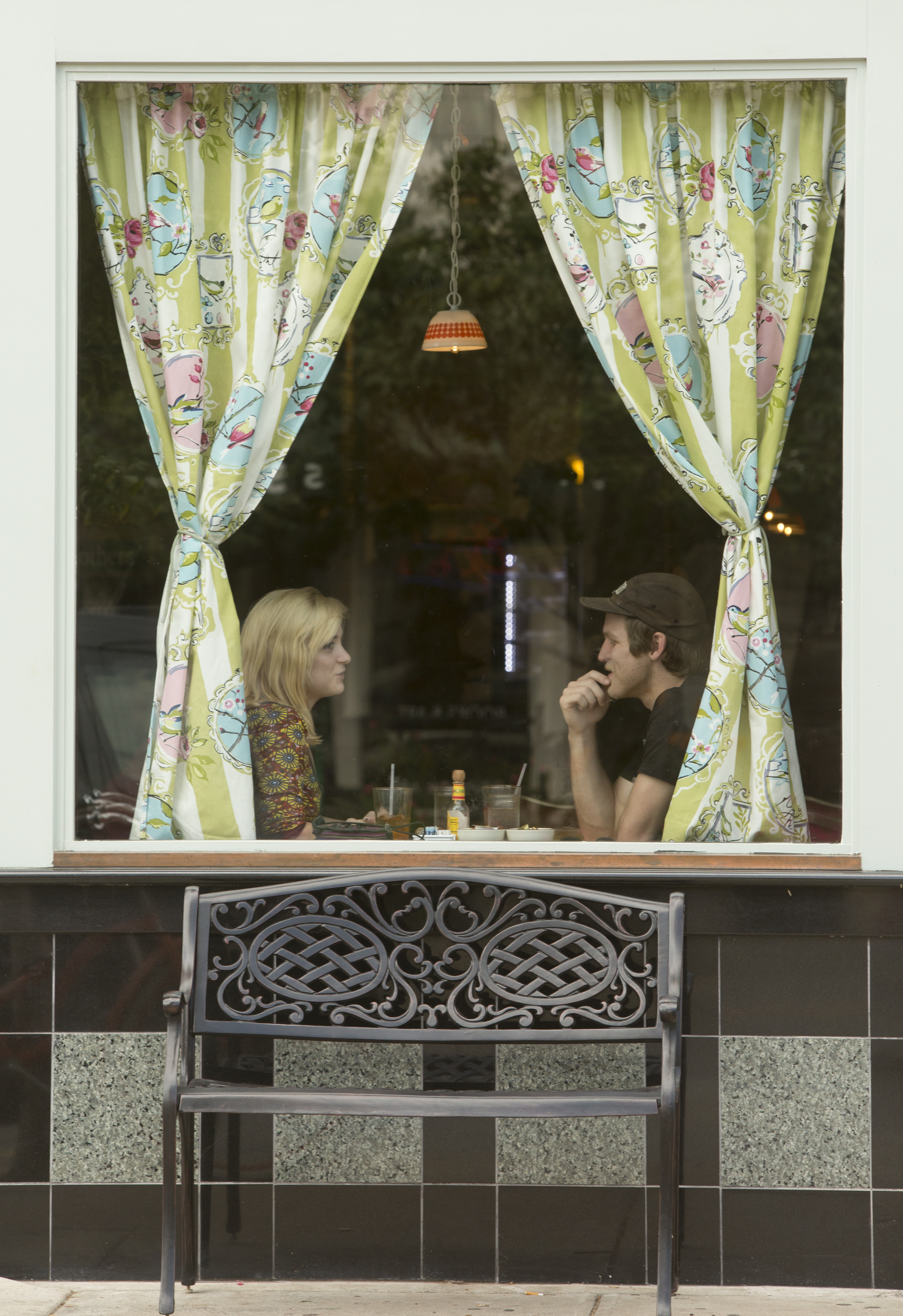 Maddy Roger and Kyle Wedd enjoy a meal in the front window of the The Ladybird Diner, 721 Massachusetts St.
