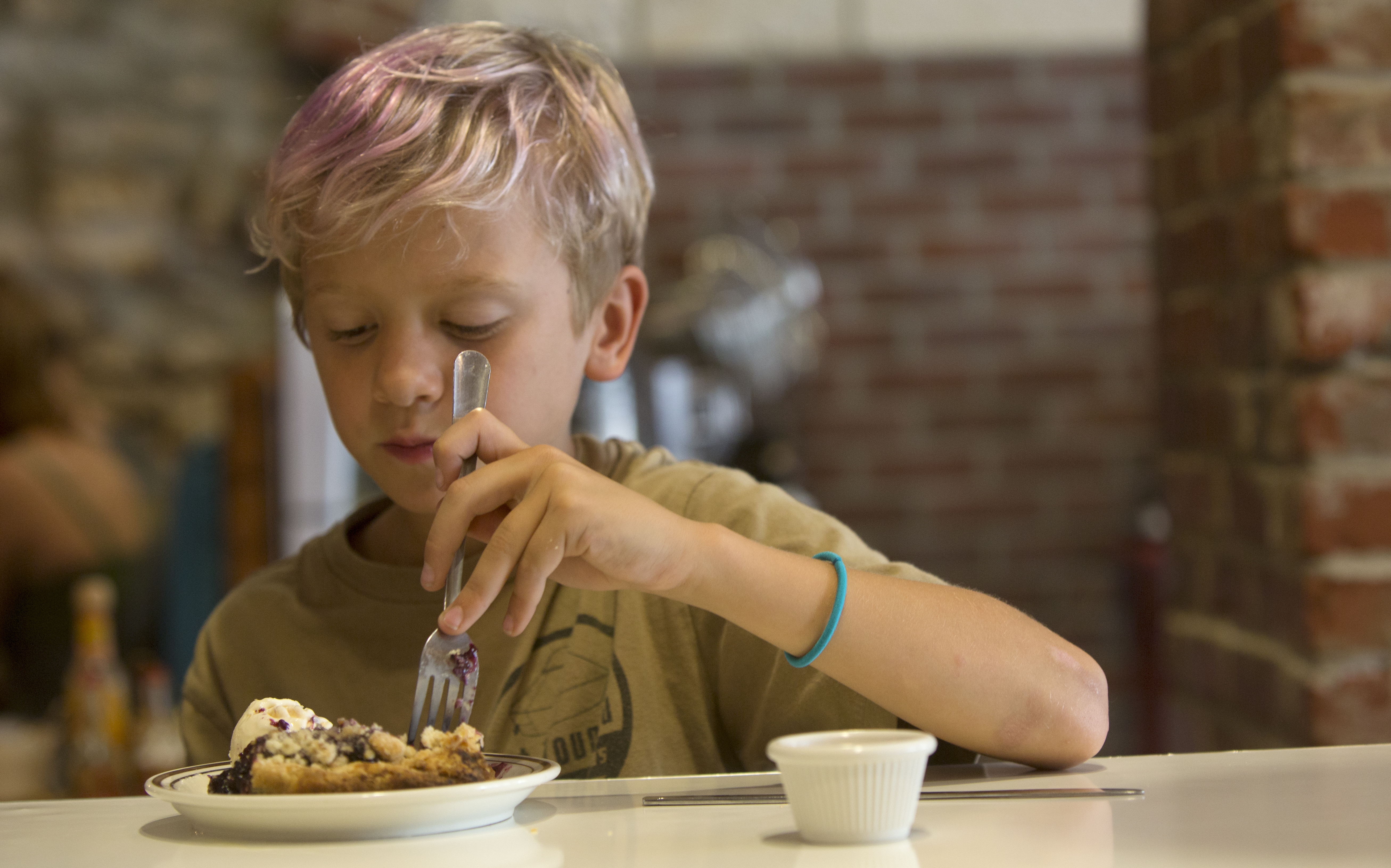 Elliot Ahlvers, 9, of Lawrence enjoyed a slice of triple berry pie after school this week at Ladybird Diner.