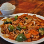Also on the menu: This place has one of the largest and most varied menus in town. There’s the aforementioned “authentic Chinese” offerings, which also include spicy dried fish and pigs’ feet, and Chinese-American classics like beef with broccoli and Kung Pao Chicken. You’ll also find a few dishes from other Asian countries, such as the stir-fried Japanese udon noodles. Served up with vegetables, soy sauce and your choice of protein, the rice noodles are deliciously thick and chewy.
