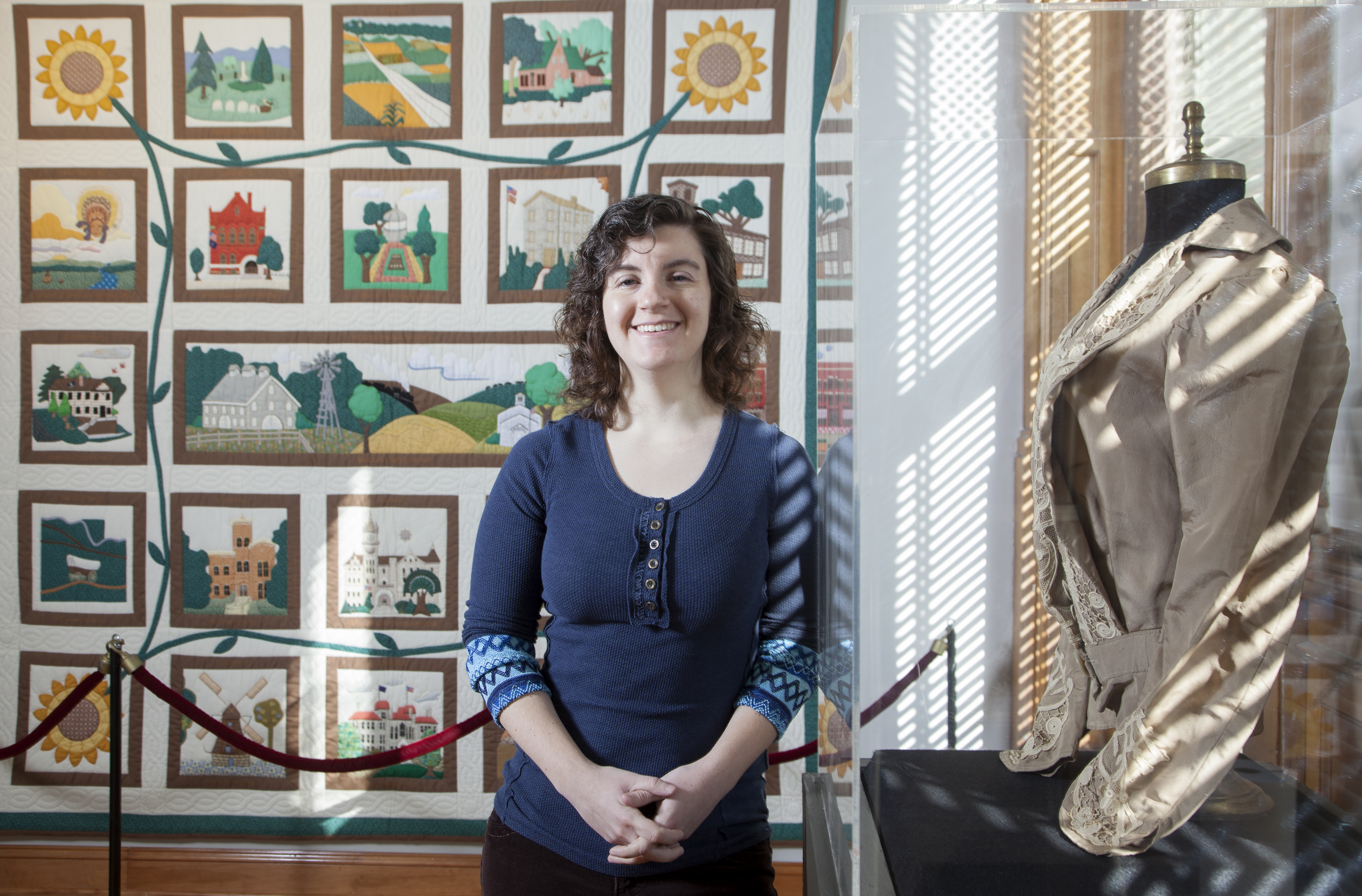 Brittany Keegan, curator at the Watkins Museum of History, has organized the new textile exhibition at the museum titled A