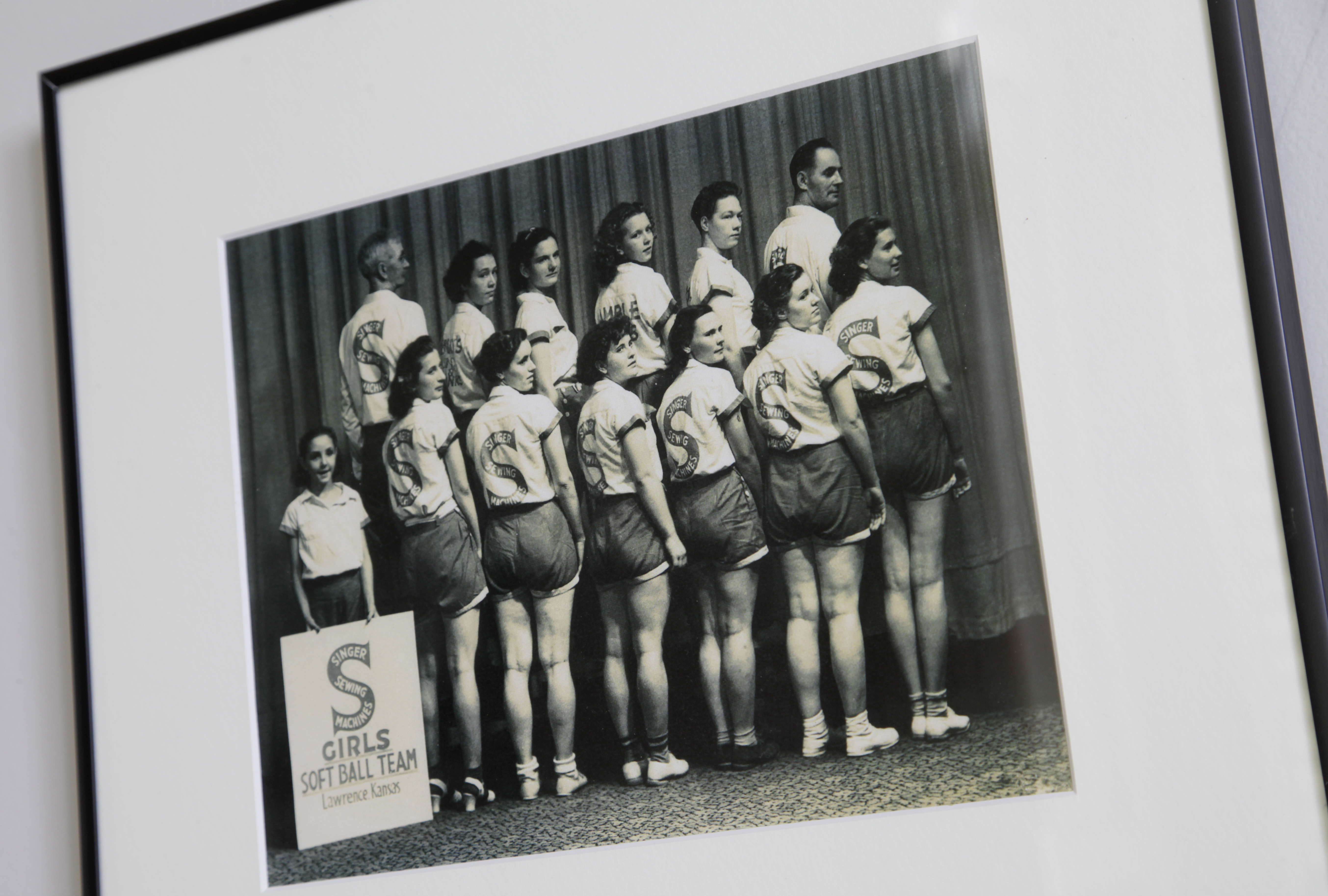 A photograph from the late '40s-early '50s shows members of the Lawrence girls Singer Company softball team. The photo is part of the Stitch