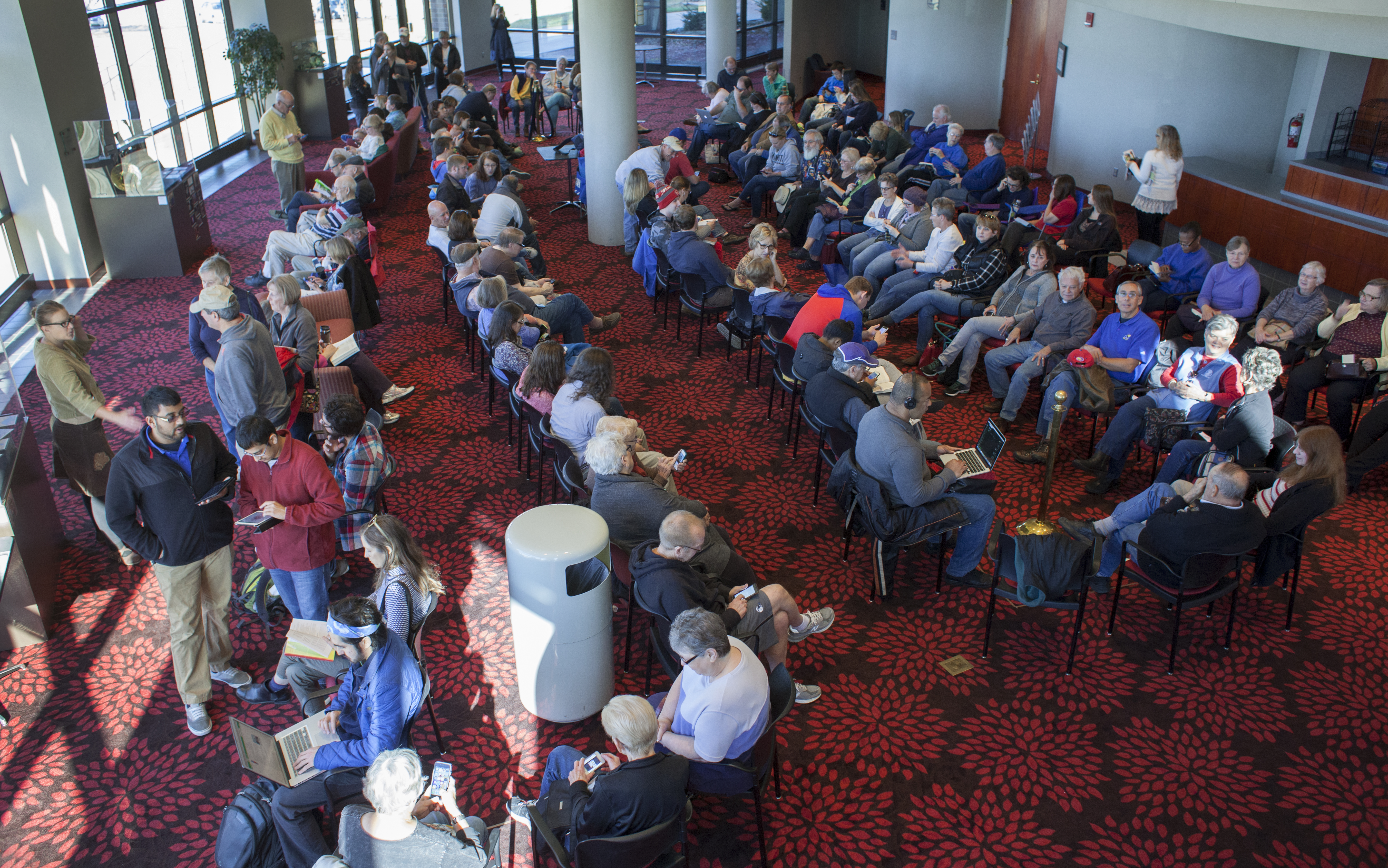 People wait in a winding line of chairs inside the Lied Center lobby, Monday, Nov. 9, 2015, to acquire tickets tickets see former President Bill Clinton Nov. 23 at the Lied Center.