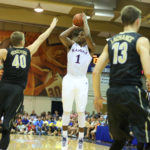Kansas guard Wayne Selden Jr. (1) pulls up for a three against Vanderbilt center Josh Henderson (40) during the first half, Wednesday, Nov. 25, 2015 at Lahaina Civic Center in Lahaina, Hawaii.