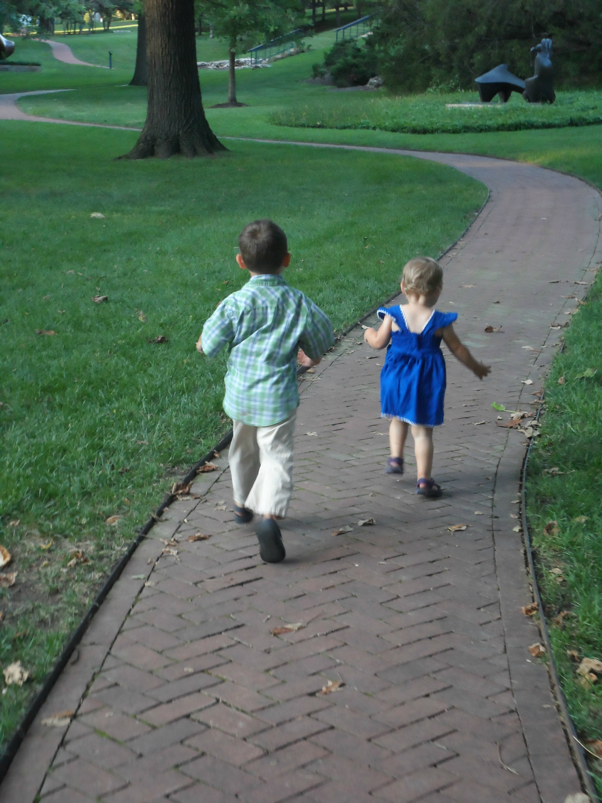 Coleman siblings Ray and Zia chase each other on a recent trip to the Nelson Atkins Museum of Art in Kansas City, Mo.