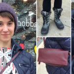 Clothing details: coat, T.J. Maxx; shawl, OmTree Shala, 0; leggings, Gap, 0; boots, not sure; bag, T.J. Maxx, 5-40; hat, made herself