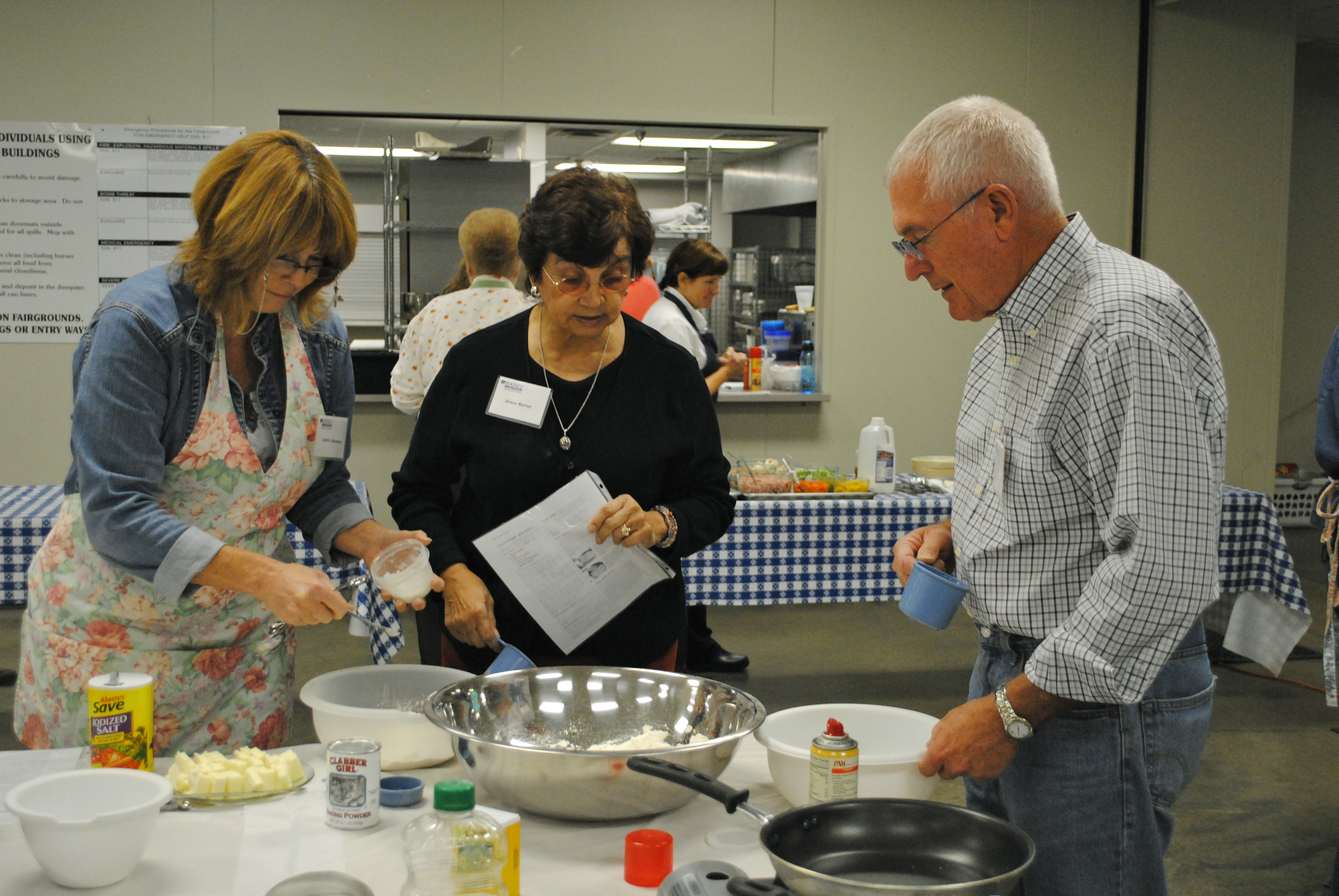Grace Marion, center, Douglas County Extension Master Food Volunteer, instructs Cooking 101 participants how to properly measure ingredients for baked products. After master food volunteers are certified, they help instruct courses with K-State Research and Extension — Douglas County.
