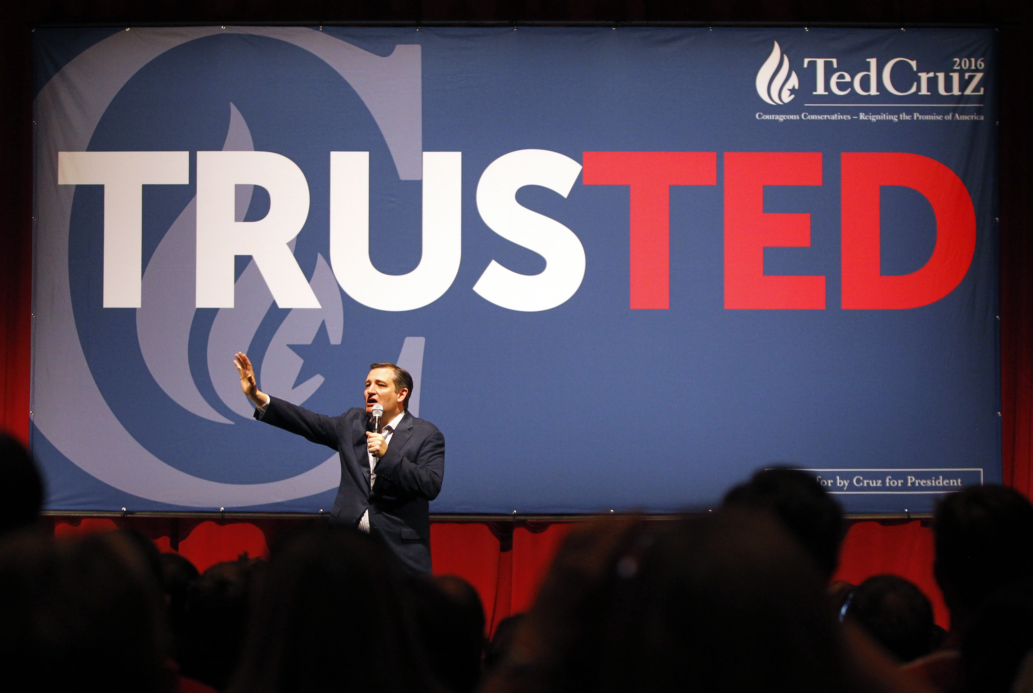 Republican presidential candidate, Sen. Ted Cruz, R-Texas, attends a campaign rally at Johnson County Community College in Overland Park, Kan., Wednesday, March. 2, 2016. (AP Photo/Colin E. Braley)