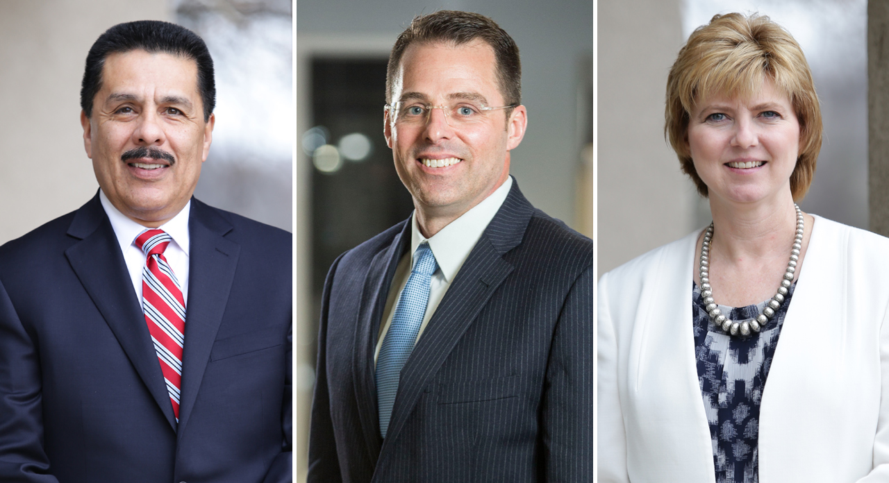 The three finalists for the Lawrence schools superintendent position are shown. At left is Michael Munoz, 59, who is currently superintendent of the Rochester school district. Kyle Hayden, center, is assistant superintendent of business and operations for the Lawrence school district. Shellaine Kiblinger, right, is superintendent of the Hutchinson school district.