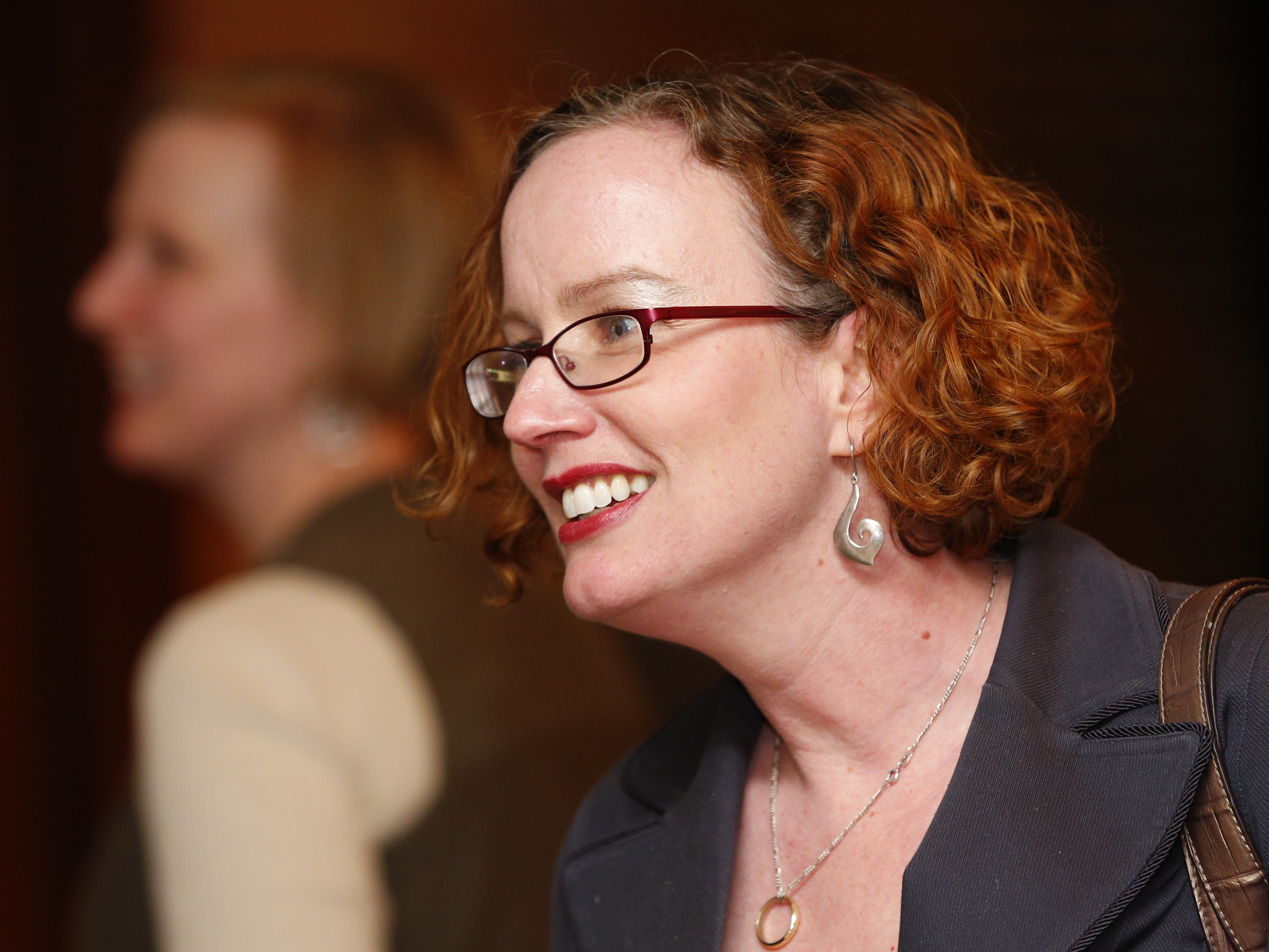 In this file photo from April 2, 2013, Kristie Adair talks with people gathered at a watch party on election night in the Alton Ballroom at Pachamama's.