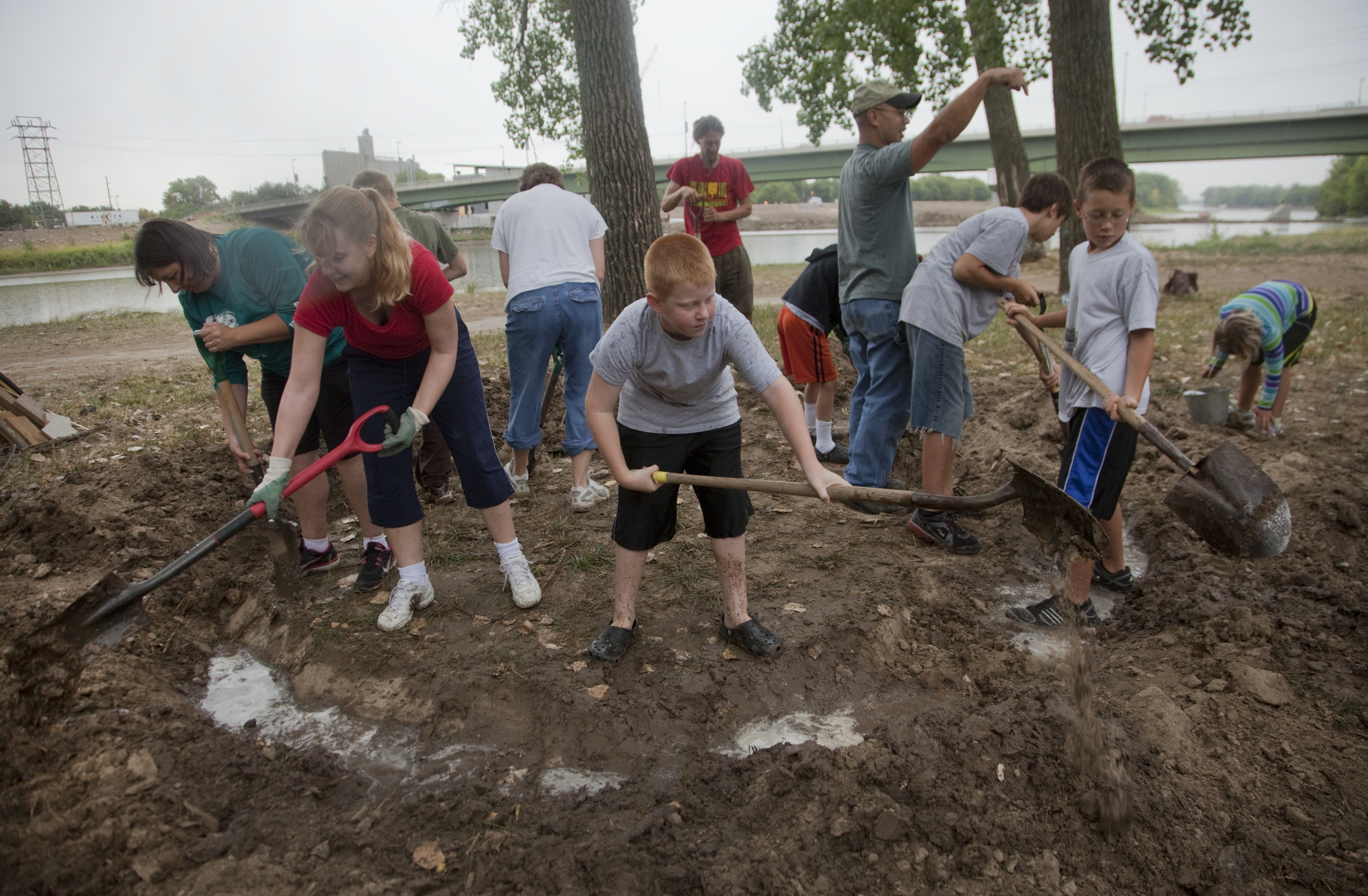 In the 1850s, Lawrence men built mud forts to protect the city from groups of Missouri men camped along the Wakarusa River. In this 2012 Journal-World file photo, children, parents and volunteers build two mud forts along the Kansas River as part of that summer's Civil