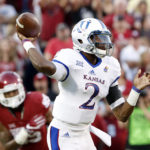 Kansas quarterback Montell Cozart (2) passes against Oklahoma during the first half of an NCAA college football game in Norman, Okla., Saturday, Oct.29, 2016.