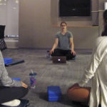 In this Sept. 12, 2017 photograph, students at the University of Vermont in Burlington, Vt., take a meditation class in a new Wellness Environment dormitory. The university has opened a dorm that goes beyond mere bans on drugs and alcohol to promote overall healthy lifestyles. Students meditate, practice yoga, eat well and make other healthy choices in the Wellness Environment. (AP Photo/Lisa Rathke)