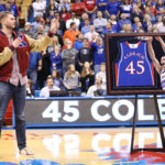 With his wife, Britt, by his side, and his dad, Walt, and brother, Grant, there to support him, as well — dad decked out in a No. 45 Kansas basketball T-Shirt, no less — former Kansas big man Cole Aldrich returned to Allen Fieldhouse on Saturday for the moment of a lifetime.