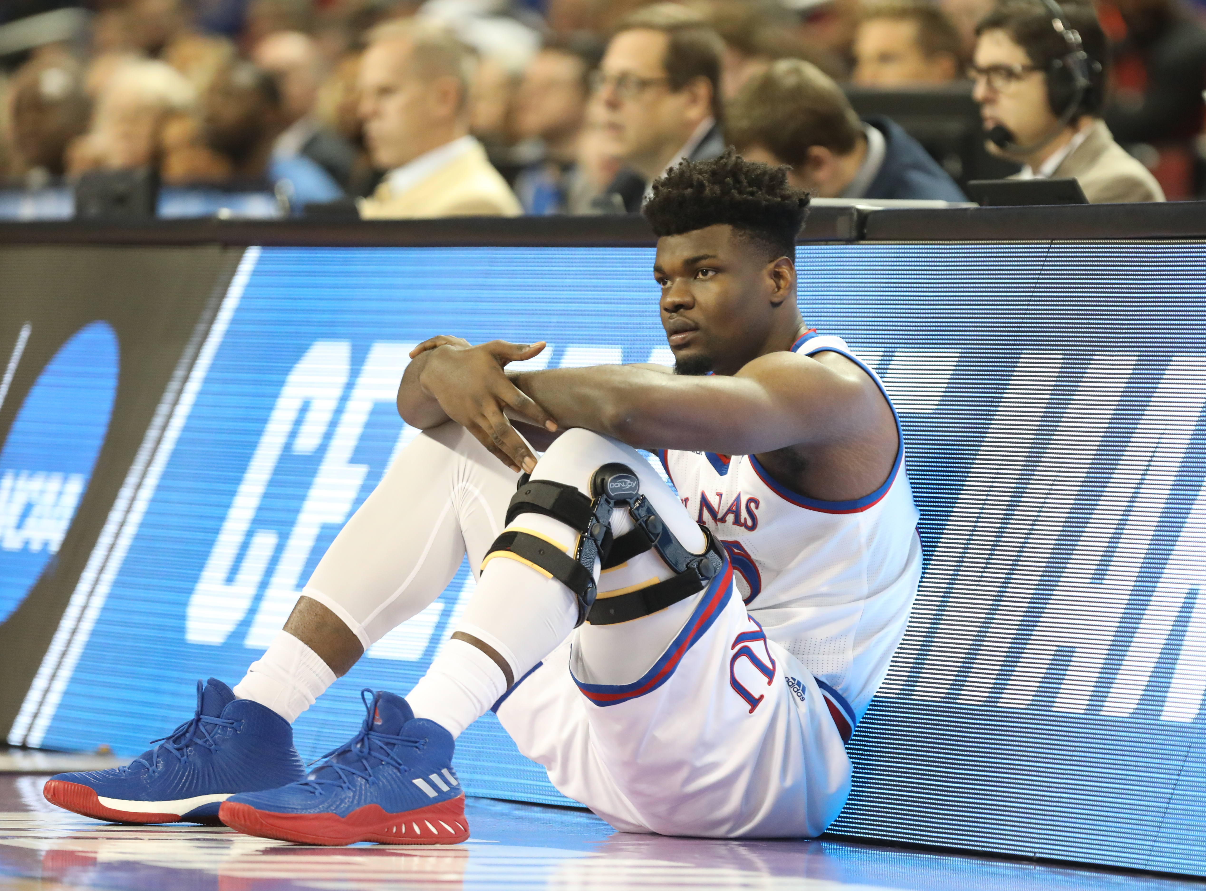 But on Saturday, in a back hallway at CenturyLink Center, walking from one media session to the next, Self reflected back on his initial thoughts and emotions when he first heard the diagnosis of Azubuike’s injury.