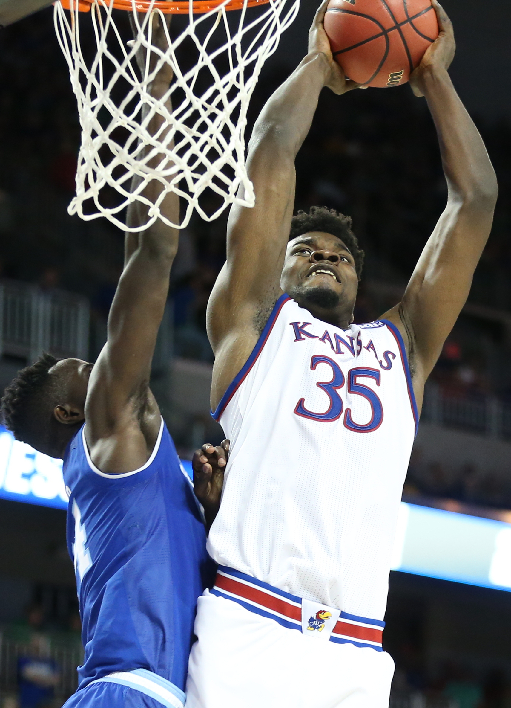Senior point guard Devonte’ Graham said he knew Azubuike was good to go during a practice the day before the Seton Hall victory last week in Wichita, when he threw up a lob without even thinking and Azubuike exploded toward the rim to go get it.