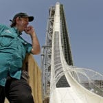 In this July 9, 2014, file photo, ride designer Jeffery Henry looks over his creation, the world's tallest waterslide called "Verruckt" at Schlitterbahn Waterpark in Kansas City, Kan. The Kansas City Star reports that Schlitterbahn Waterparks and Resorts co-owner Henry was arrested Monday, March 26, 2018, in Cameron County, Texas. (AP Photo/Charlie Riedel, File)