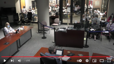 People wait to provide public comment about draft solar farm regulations at City Hall as part of the Planning Commission's meeting on Nov. 15, 2021, which was a hybrid meeting conducted both in person and online.