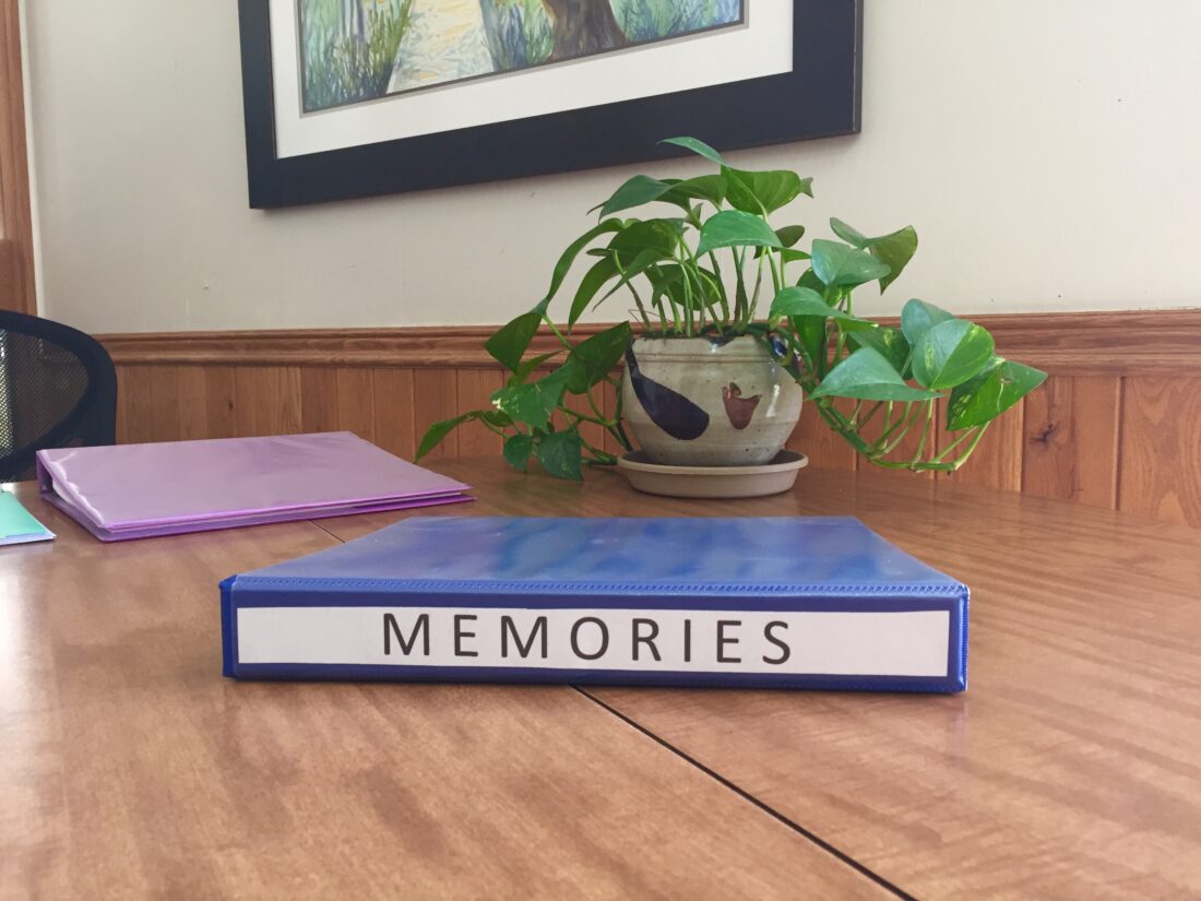 The cover of the blue three-ring binder is unadorned, its only marking the word “memories” written on the spine in simple black typeface. It sits on a shelf at the DARE Center most of the time, but that day someone had brought it out, and it was open on the table.
