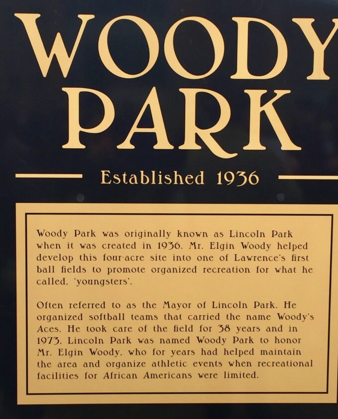 The ball diamond where Elgin Woody organized baseball and softball leagues for Lawrence’s Black youth and other kids of color is still the main feature of the park that bears his name and, now, visitors will also know his story.