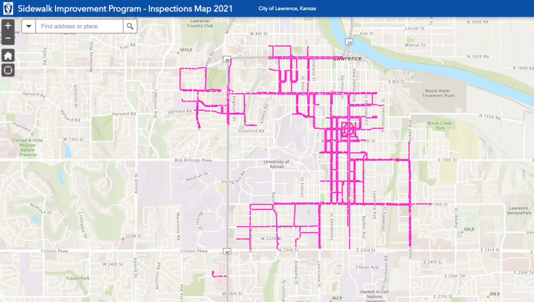 This City of Lawrence map shows the sidewalks included in the city’s 2021 sidewalk improvement program.