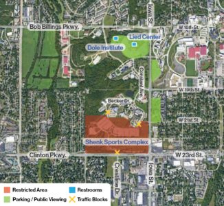 Guests will be able to purchase concessions provided by the KU Memorial Union, and food trucks will be available at the Lied Center. Attendees are asked to clean up and dispose of all trash and items they bring with them to the parking/viewing areas.