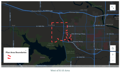 The planning area is located primarily west of K-10 highway, also known as the South Lawrence Trafficway, and north and south of U.S. Highway 40, according to the city’s project website. The planning area also contains some land east of K-10. While some of the area is within the city’s current boundaries, a majority is in the unincorporated area of Douglas County not currently served by any city infrastructure or services.