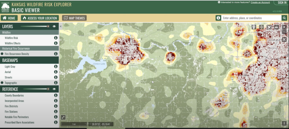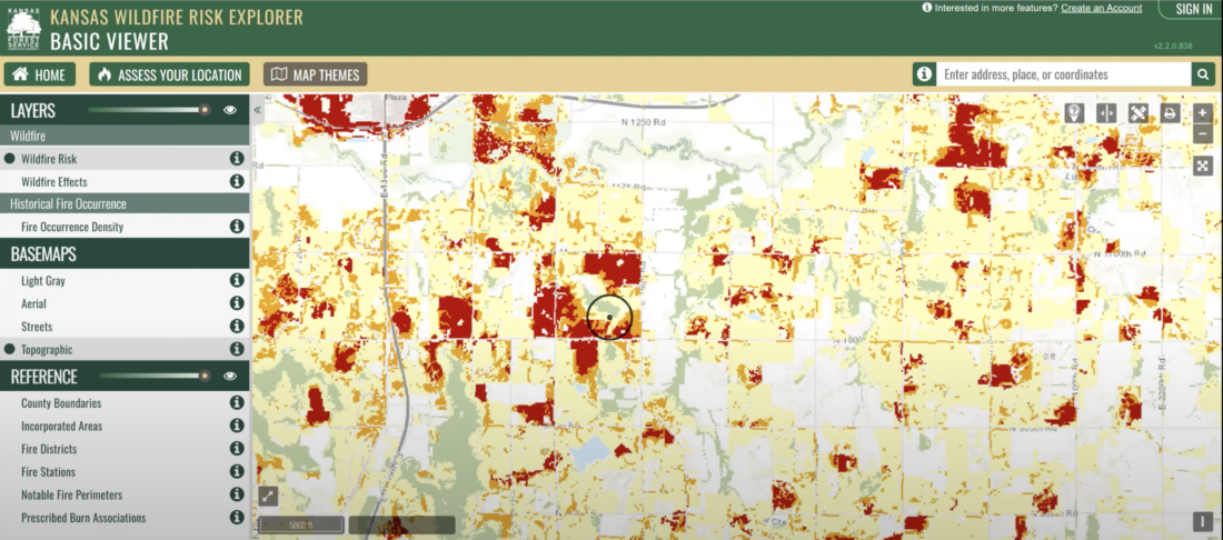The Wildfire Risk Explorer tool that Llewellyn was showing the commission is publicly accessible at https://kansaswildfirerisk.org and is designed to assist property owners and first responders with assessing their wildfire risk. It can generate a risk assessment report for entering a specific address or geographic coordinates, rating the fire risk on a scale ranging from minimal to extreme. The tool can also display other maps, such as one that shows historical fire data around the state.