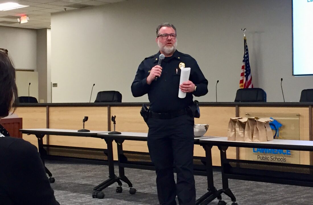 Free State High School Resource Officer Kacey Wiltz shared another number. She said in the past two months, she’s had two kids come talk to her about people who are dealing drugs at Free State. She said overdoses happen at the high schools, and as part of the events Thursday SROs encouraged students not only to come to them with concerns, but also let them know that SROs and the nurses have the opioid overdose treatment Narcan in their offices.