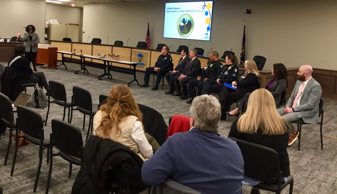 The Lawrence Police Department joined with the FBI, the Lawrence school district and the Douglas County District Attorney’s Office for a community tour and forum on the fentanyl crisis on Thursday. At the forum Thursday evening, Cynthia Johnson, the district’s executive director of inclusion, engagement and belonging, said that events at both high schools involved over 3,000 students and 400 staff members — and the goal of all the day’s conversations was to save lives.