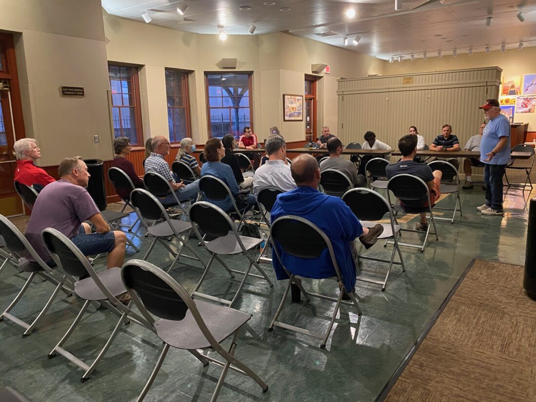 Residents of North Lawrence listen during a City Commission candidate forum at the Lawrence Union Pacific Depot, 402 N. Second St., on Wednesday, Oct. 4, 2023.