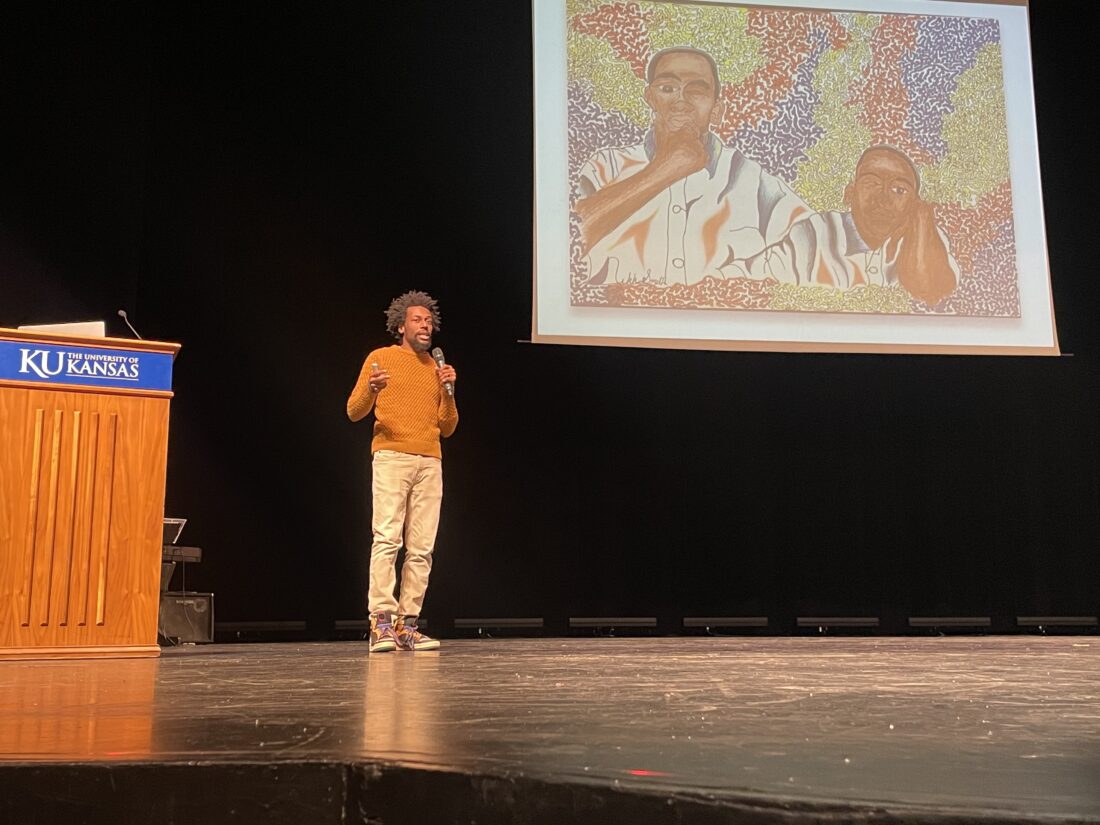 Nikkolas Smith, the bestselling author of “The Artivist,” spoke to a crowd at the Lied Center on Thursday as part of the Lawrence school district’s annual “One Dream” MLK celebration. Smith spoke about his passion for activism and how he uses his artwork to send a message about injustice and inequality.