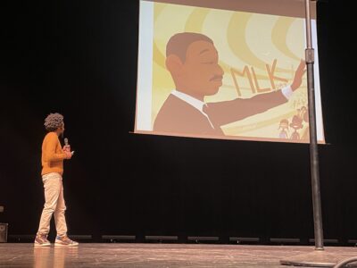 At district’s annual Martin Luther King Jr. celebration, bestselling author speaks about art and activism