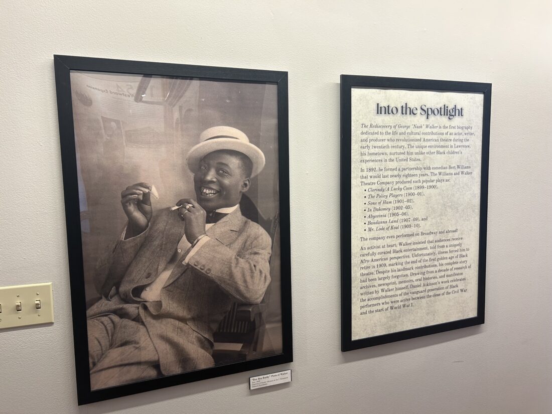 Part of Watkins Museum of History exhibit about George ‘Nash’ Walker, a Lawrence actor, writer and producer who revolutionized Black American theater at the turn of the 20th century. Steve Nowak, the executive director of the museum, said changes to criteria for federal grants have promoted “only certain kinds of projects,” with the Walker exhibit being one that might not receive federal support.