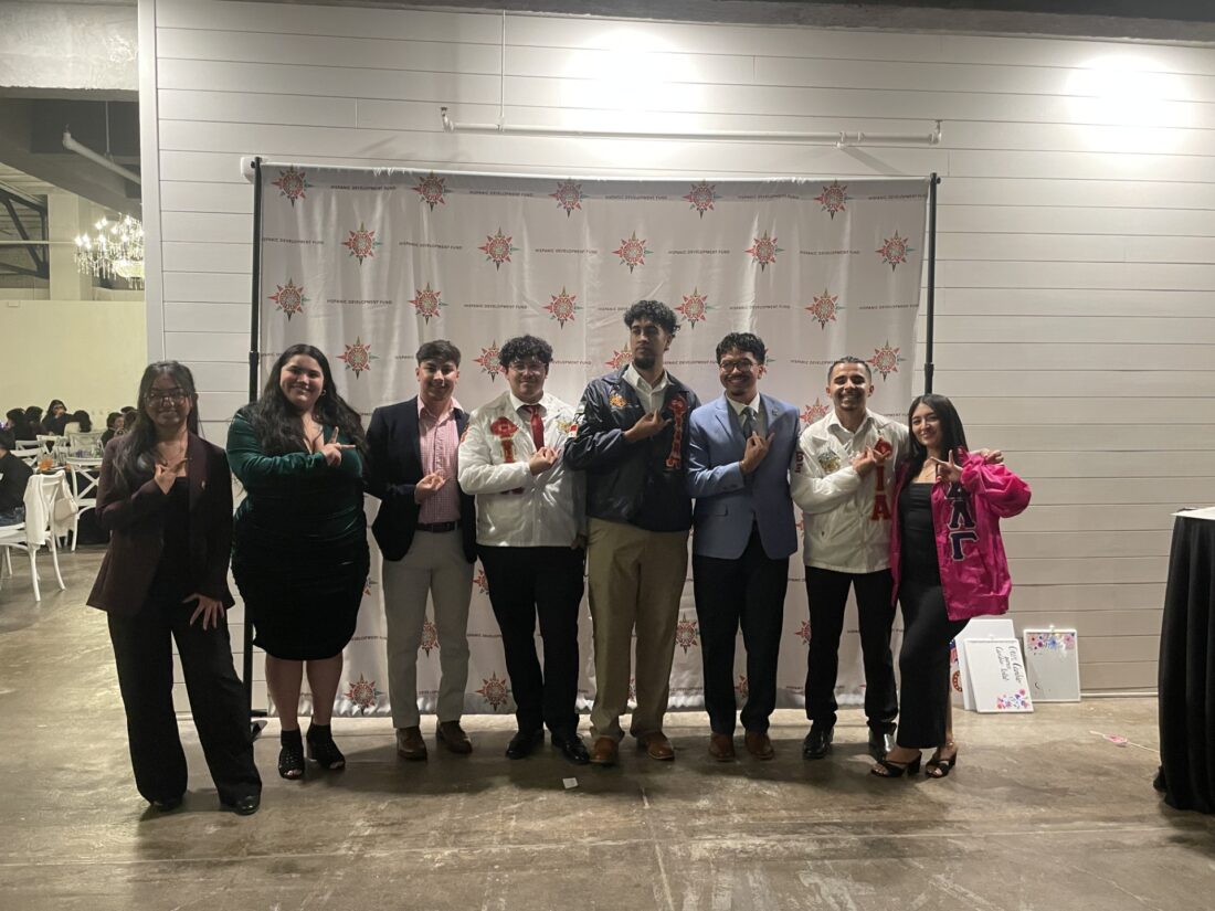 Members of KU’s Phi Iota Alpha Fraternity invited other members of the Multicultural Greek Council to join them at an award ceremony for the Hispanic Development Fund. Miguel Tapia Becerra (third from right) said partnering with the other organizations helped them raise over $12,000 for the fund, with those funds going to scholarships for Hispanic students in higher education.