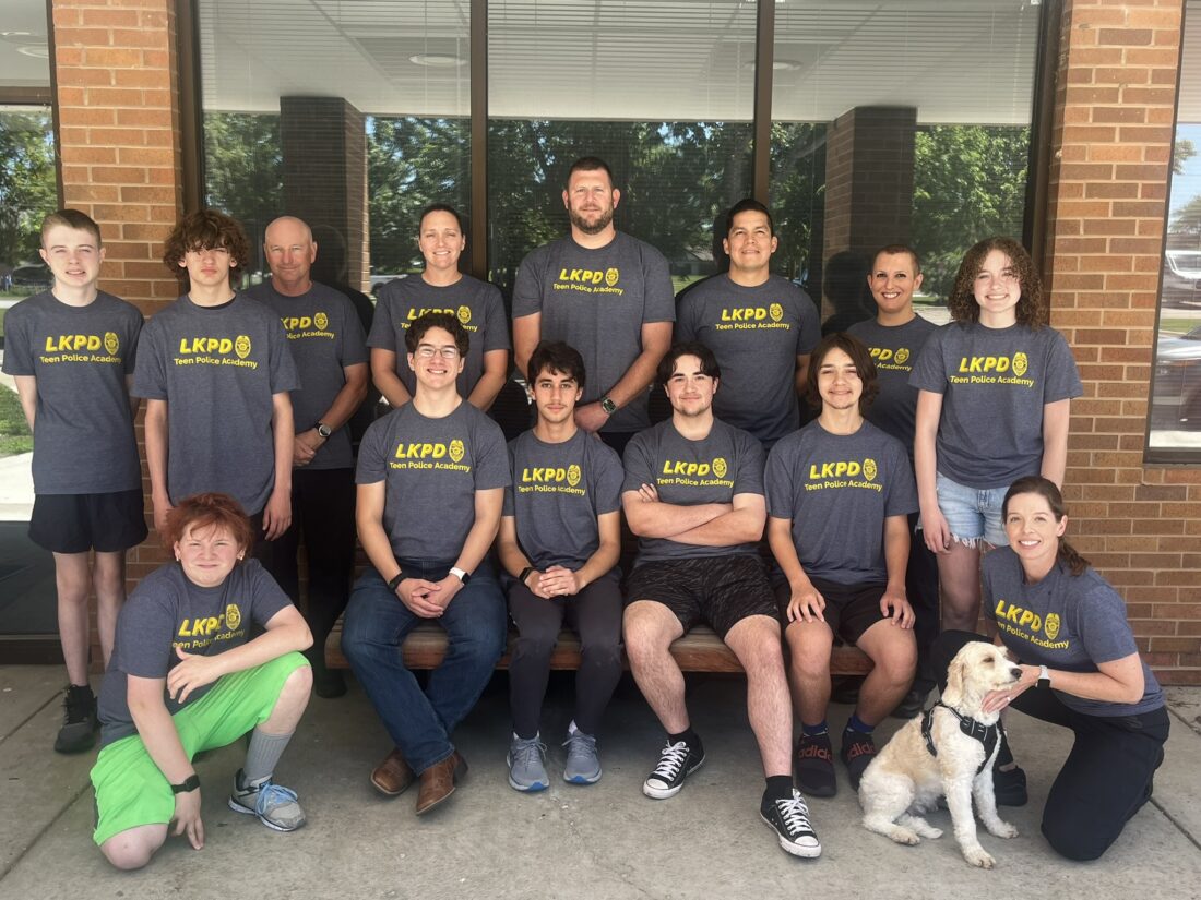 Adrian Mendoza (bottom row, third from right) used lessons learned from Lawrence Police Department’s Teen Police Academy — a two-week program where kids learn a variety of skills law enforcement officers use from self defense tactics to first aid — to help save a woman’s life.