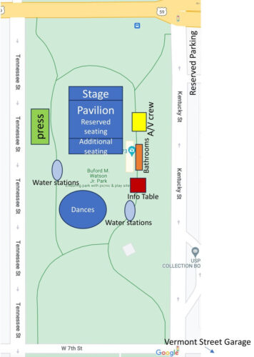 The event at Watson Park will be led by Master of Ceremonies Sydney Pursel and will feature speeches by the Kaw Nation tribal chair, Lawrence Mayor Lisa Larsen, Jim Pepper Henry and others. It will include a drum honor song and a prayer by a Kaw Nation elder and will conclude with an invitation to move into the park for friendship dances. The event is expected to take about 45 minutes, the city told the Journal-World. The city provided a map of the park at 727 Kentucky St. and encouraged the public to use the Vermont Street Parking Garage, along with street parking in the area.