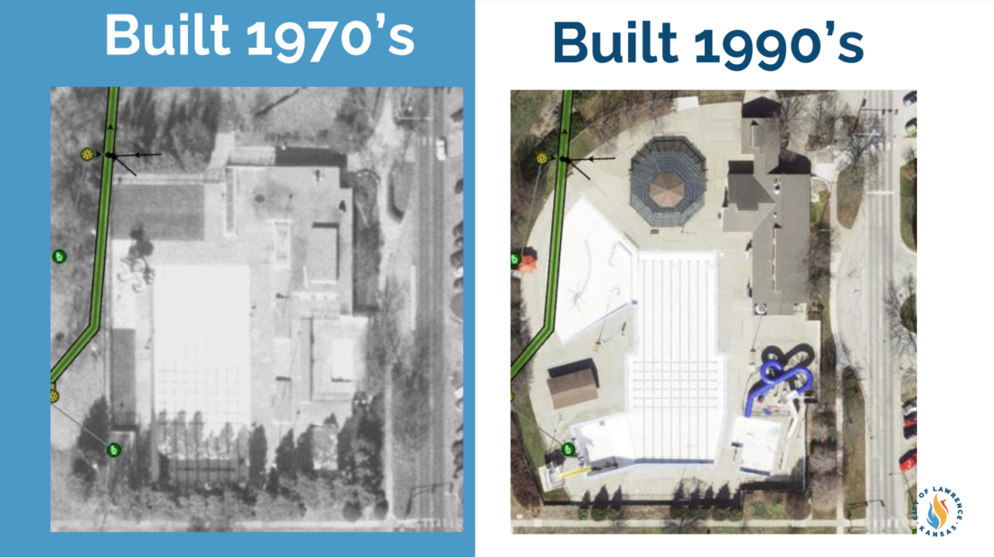 The one involving a crack is a nearly $5 million change order to the city’s Jayhawk Middle Reach Watershed Project. Part of the change order is to reroute a storm sewer near Tennessee Street that currently runs under a structurally failing area of Lawrence’s outdoor pool.