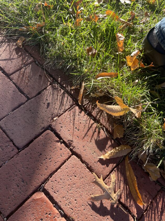 Walking along Ninth, Shalinsky points out places where there are a lot of gaps and uneven spacing. He said that the best practices for constructing brick sidewalks involve creating a border of bricks laid on their sides to hold the other bricks in place; these are called “soldier bricks.”
