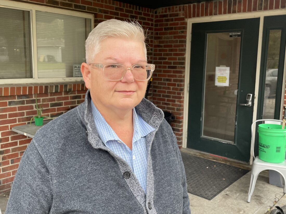 Angie Bauer, supportive housing rental manager at Tenants to Homeowners, is pictured outside of the agency’s Sunrise House on Wednesday, Oct. 29, 2025. She said Tenants to Homeowners was slated to get a naloxone vending machine soon.