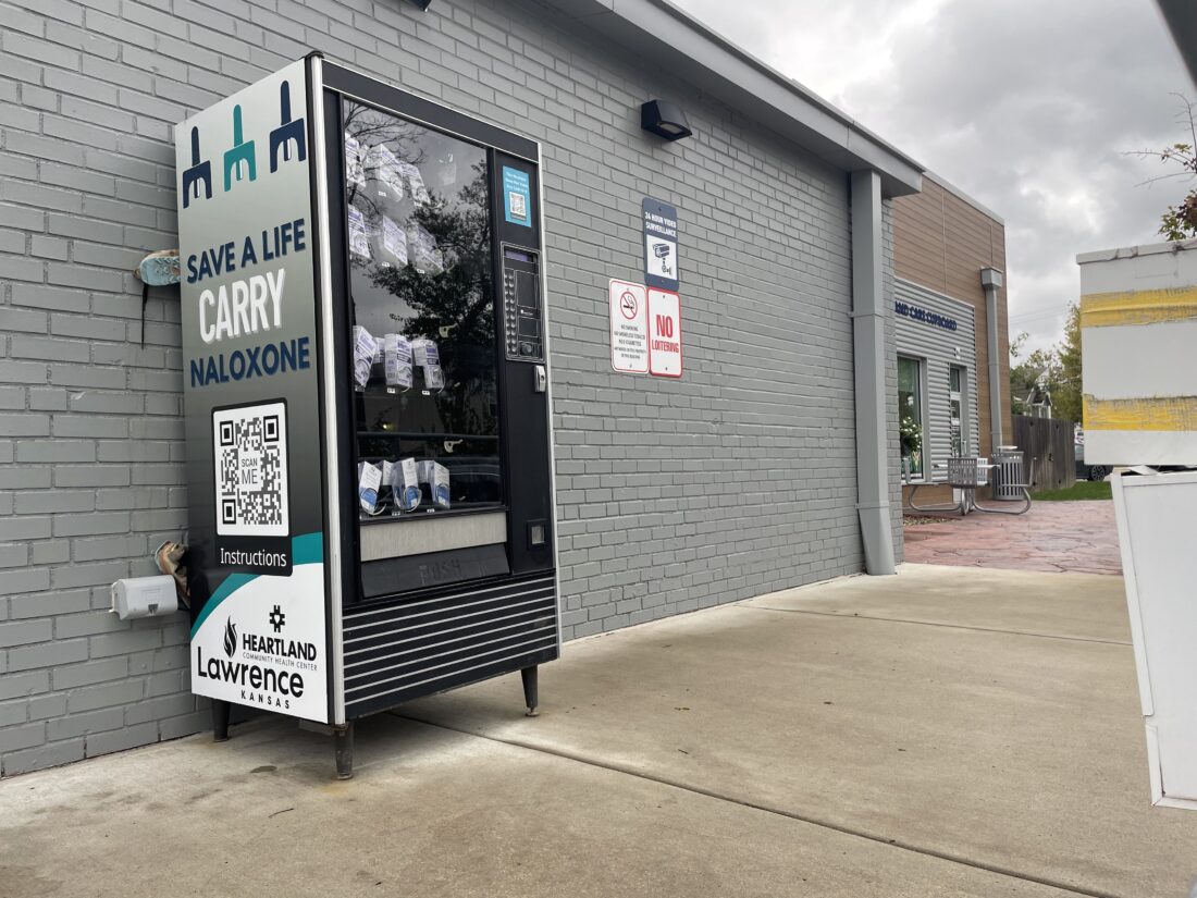 A naloxone vending machine is pictured outside Heartland Community Health Center, 1312 W. Sixth St., on Wednesday, Oct. 29, 2025.