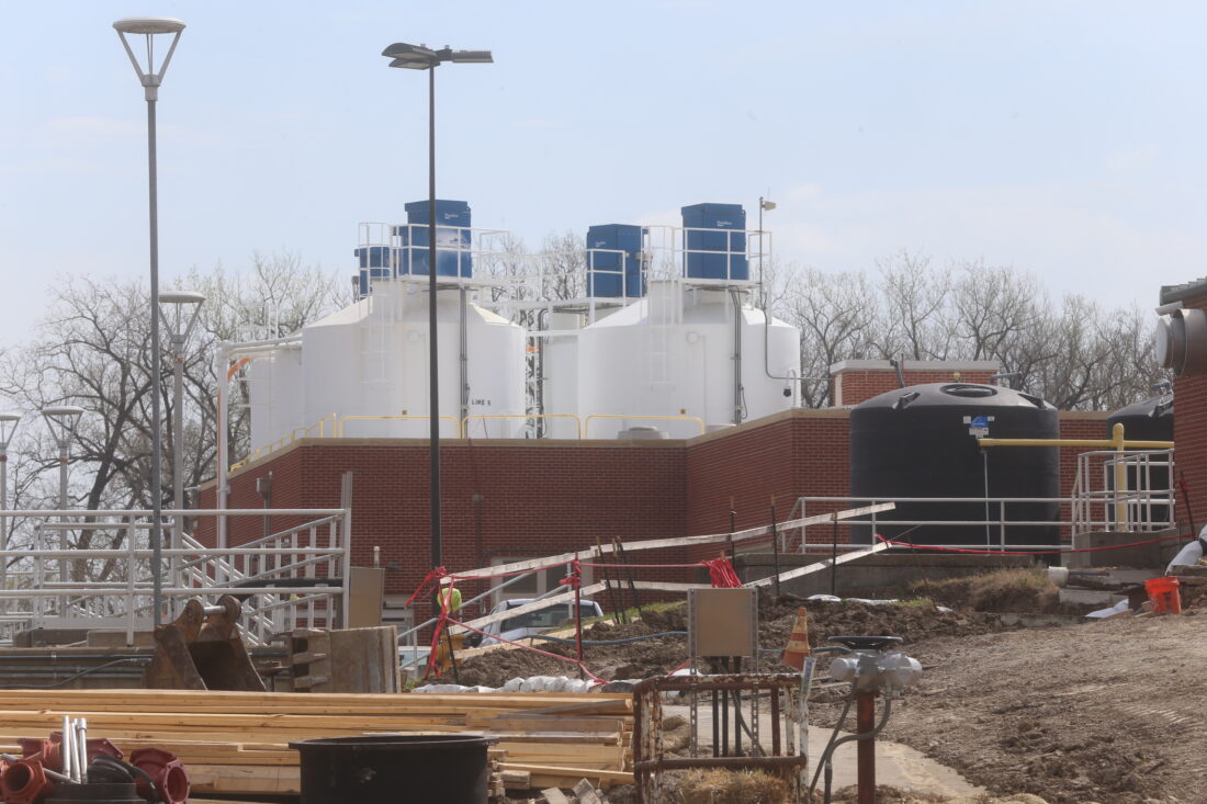 Construction work at Lawrence’s Kansas River Treatment plant is shown on March 31, 2026